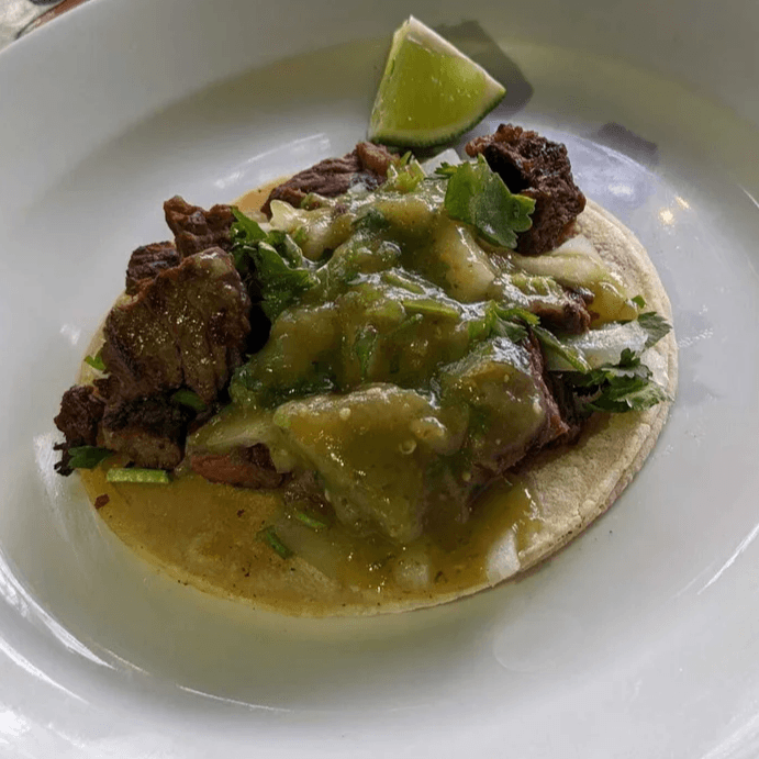 Three small corn tortilla tacos with your choice of grilled steak, grilled chicken, pork carnitas, pork pastor, pork pibil or chicken Oaxaca. Topped with onions, salsa Verde, cilantro, lime and pickled jalapeños